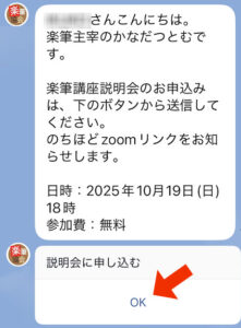 🌸 リアル会場の説明会では、実際に筆を持って体感していただくのですが、今回はzoomなので、特別に用意したミニワークをつとむが実演します