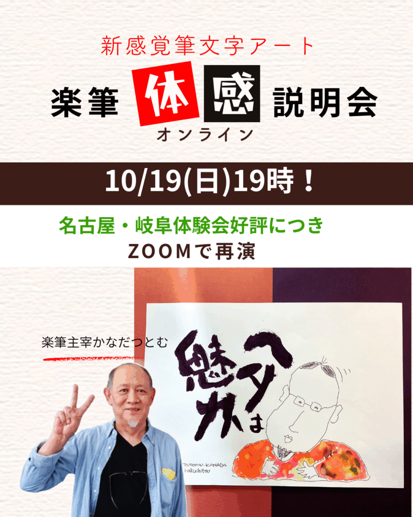 楽筆は、かつて東急ハンズで手書きのメッセージボードを2万枚売った筆文字作家かなだつとむが考案して、2016年に教え始めた新しい筆文字アートです。