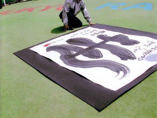 その5ヶ月後、別の方から話をいただいて、中京競馬場のG1レースにて数千人の前で畳3畳分の文字を書くことになったり、その後も数々の大舞台を経験しましたが、 ぼくにあったのは技術ではありません。