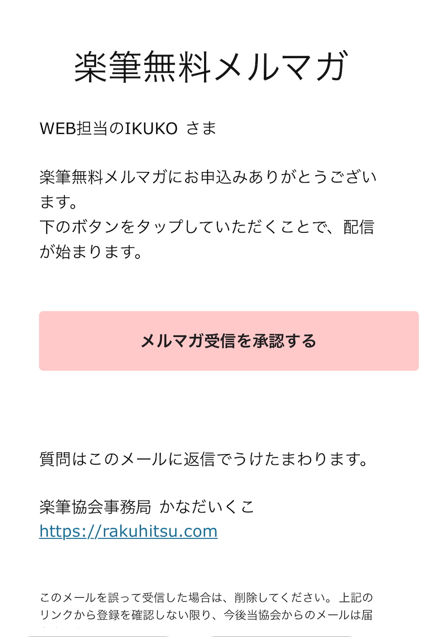 その確認メールを承認してもらうと、メルマガ配信がはじまります。